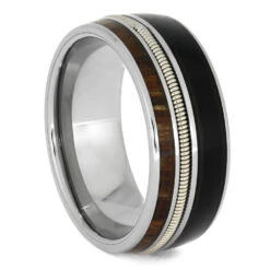 Guitar String Ring With Vinyl LP Record, Palm Wood Wedding Band