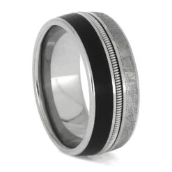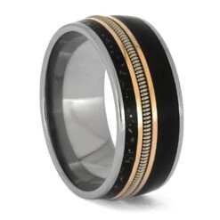 Guitar String Wedding Band With Vinyl LP Record, Stardust, And Rose Gold