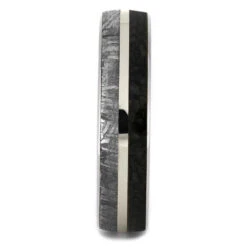 Black & White Mokume Gane Ring With Meteorite, Dinosaur Bone