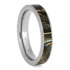 Bronze Abalone Ring, Color Changing Wedding Band In Titanium