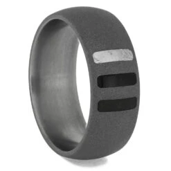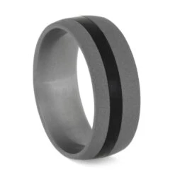 Ruby Redwood Wedding Band, Matte Titanium Ring With Pinstripe