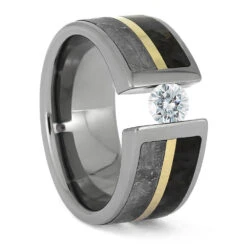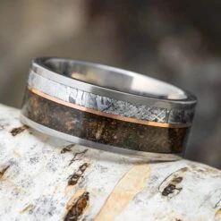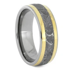 Tungsten & Dinosaur Bone Men’s Wedding Band With Gold Pinstripe