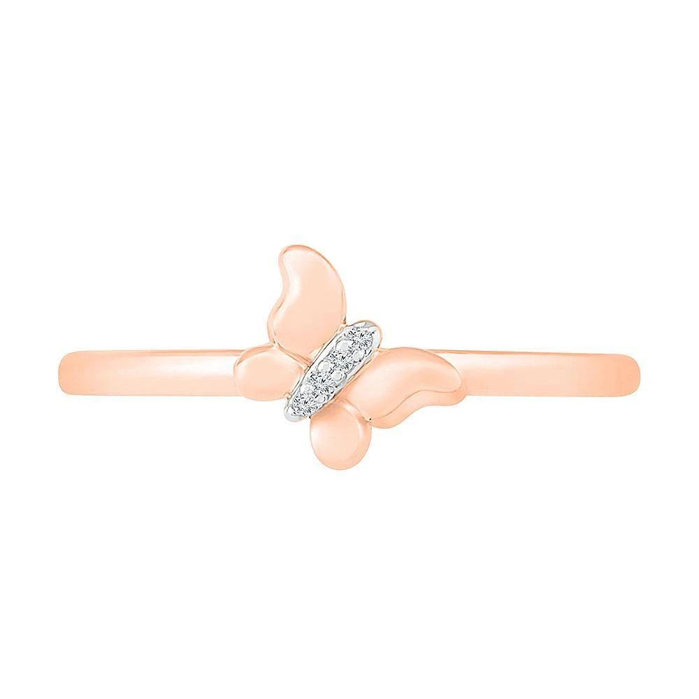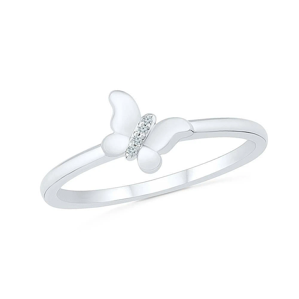 A tiny butterfly sits atop this diamond statement ring. Perfect as a special gift for that special someone who makes your heart flutter every time you see them! This nature themed ring is available in sterling silver or rose gold.