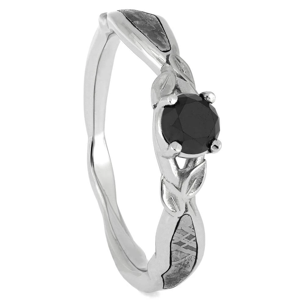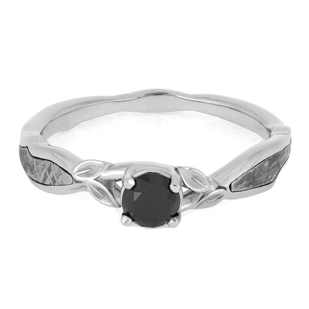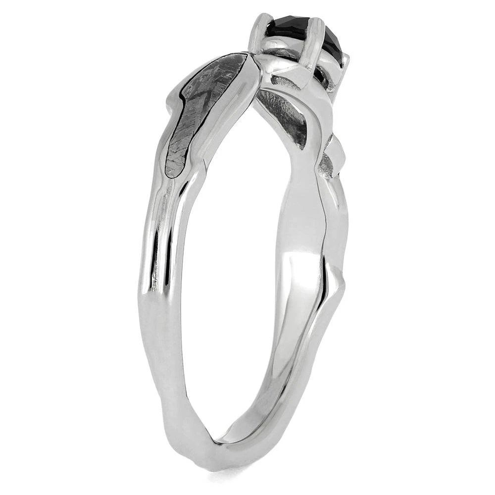 This platinum engagement ring shows off contemporary beauty a black diamond solitaire stone. A Gibeon meteorite engagement ring is the perfect choice for any stargazing bride-to-be!