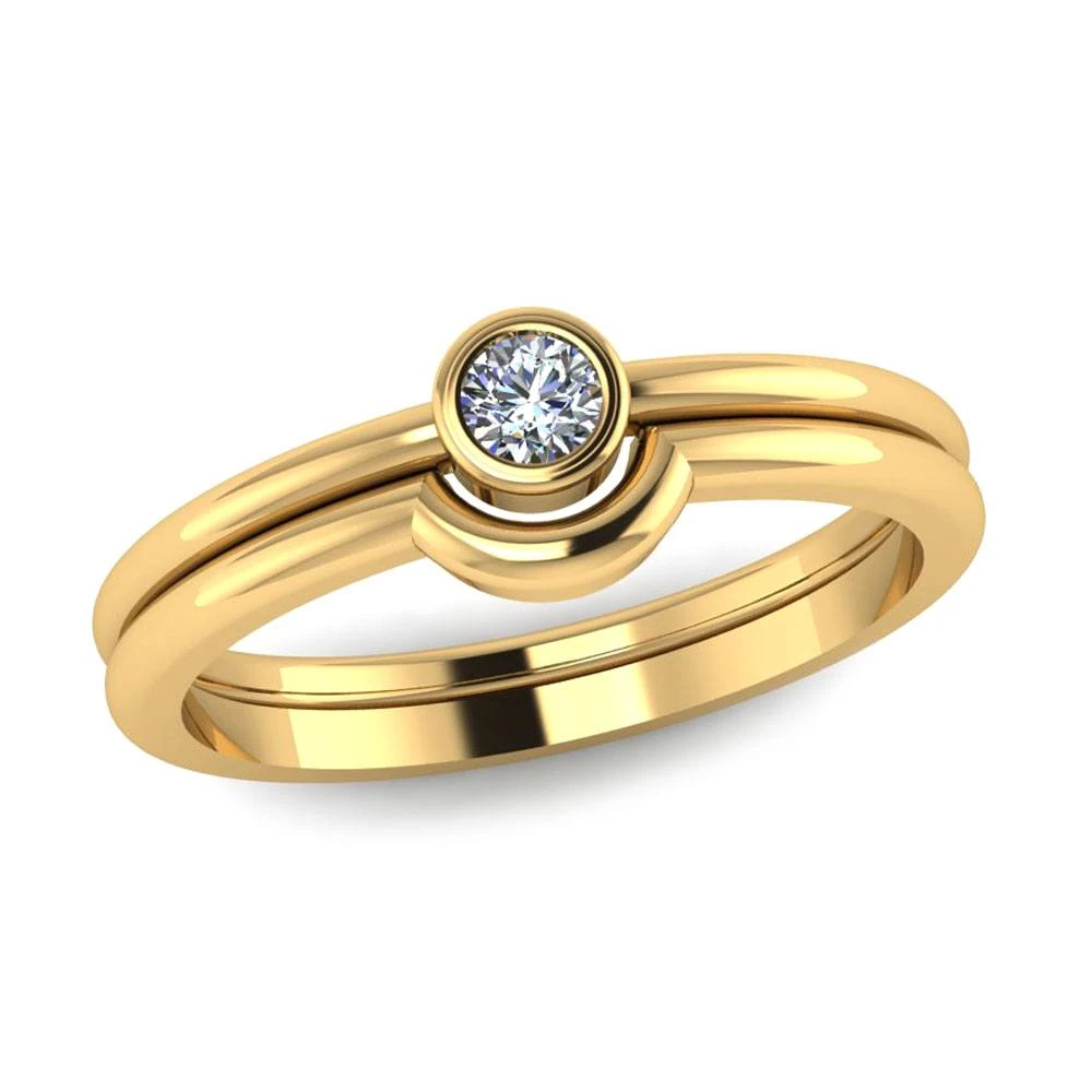 Just like you and your significant other, this solitaire diamond bridal set is quite the pair. A shimmering solitaire diamond engagement ring is complemented by its matching wedding band counterpart. With a half circle design this diamond bridal set will set your love apart from the rest.