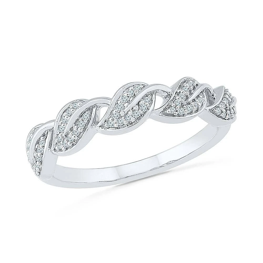 This nature-themed wedding band features a leafy design with diamond accents. A perfect choice for a woodland wedding or for your boho bride! This diamond wedding band exudes romance and brilliance. It also makes a great addition to any stackable ring collection.