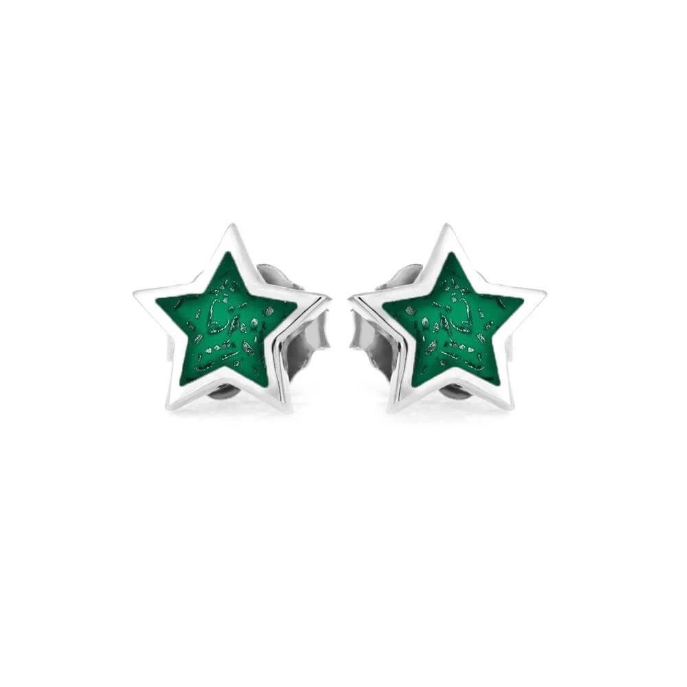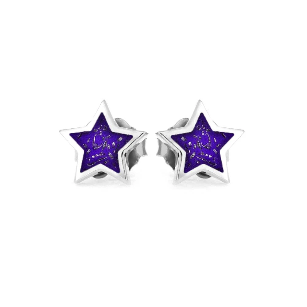Crafted in tiny, silver star-shaped bezels, these simple and stunning black stardust earrings feature authentic Gibeon meteorite shavings nestled in enamel. Multiple stardust colors available.