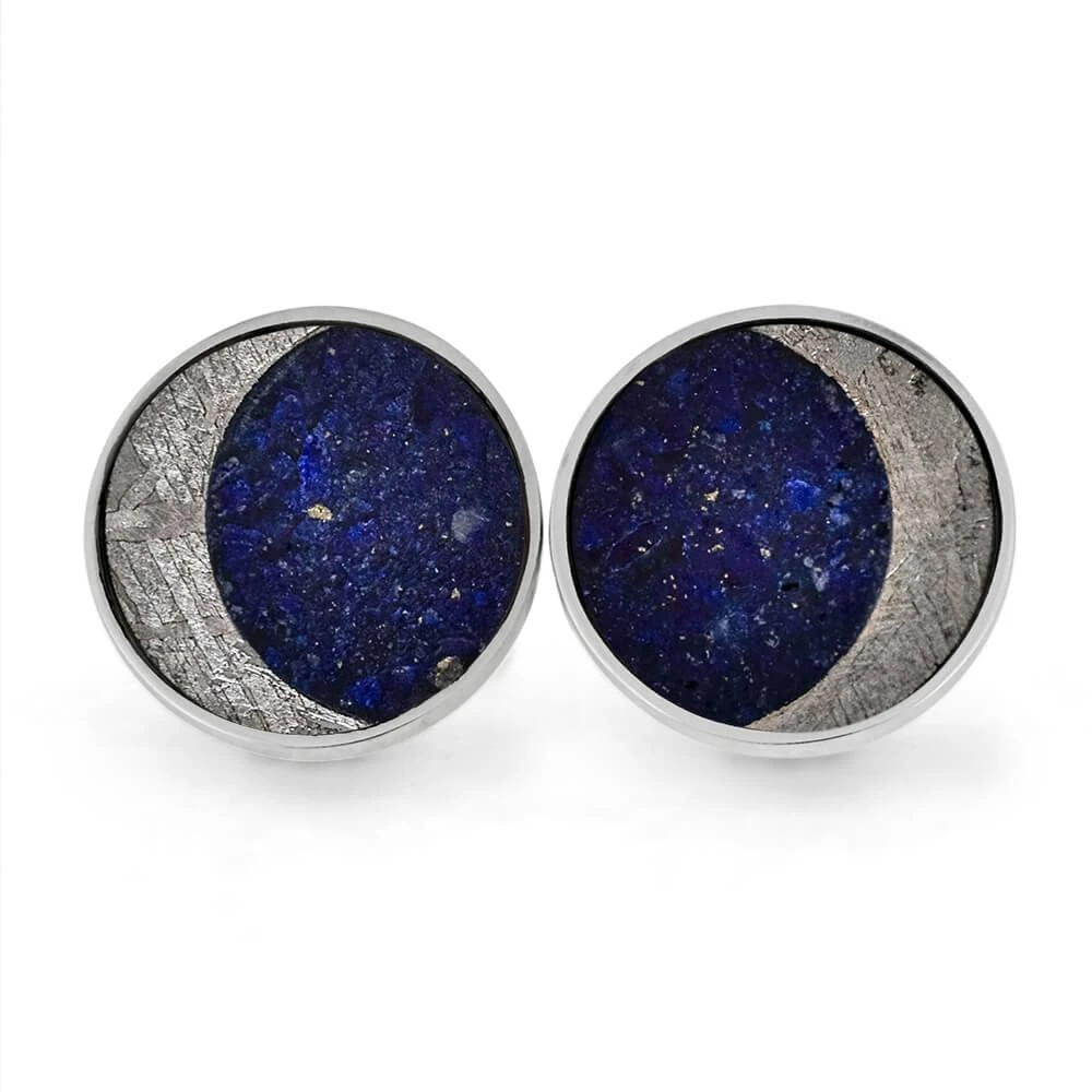 Give the gift of outer space to your fiancé, groomsmen, or special someone with these meteorite and lapis lazuli cuff links! A Gibeon meteorite crescent moon is accented by a lapis lazuli night sky, set in polished sterling silver.
