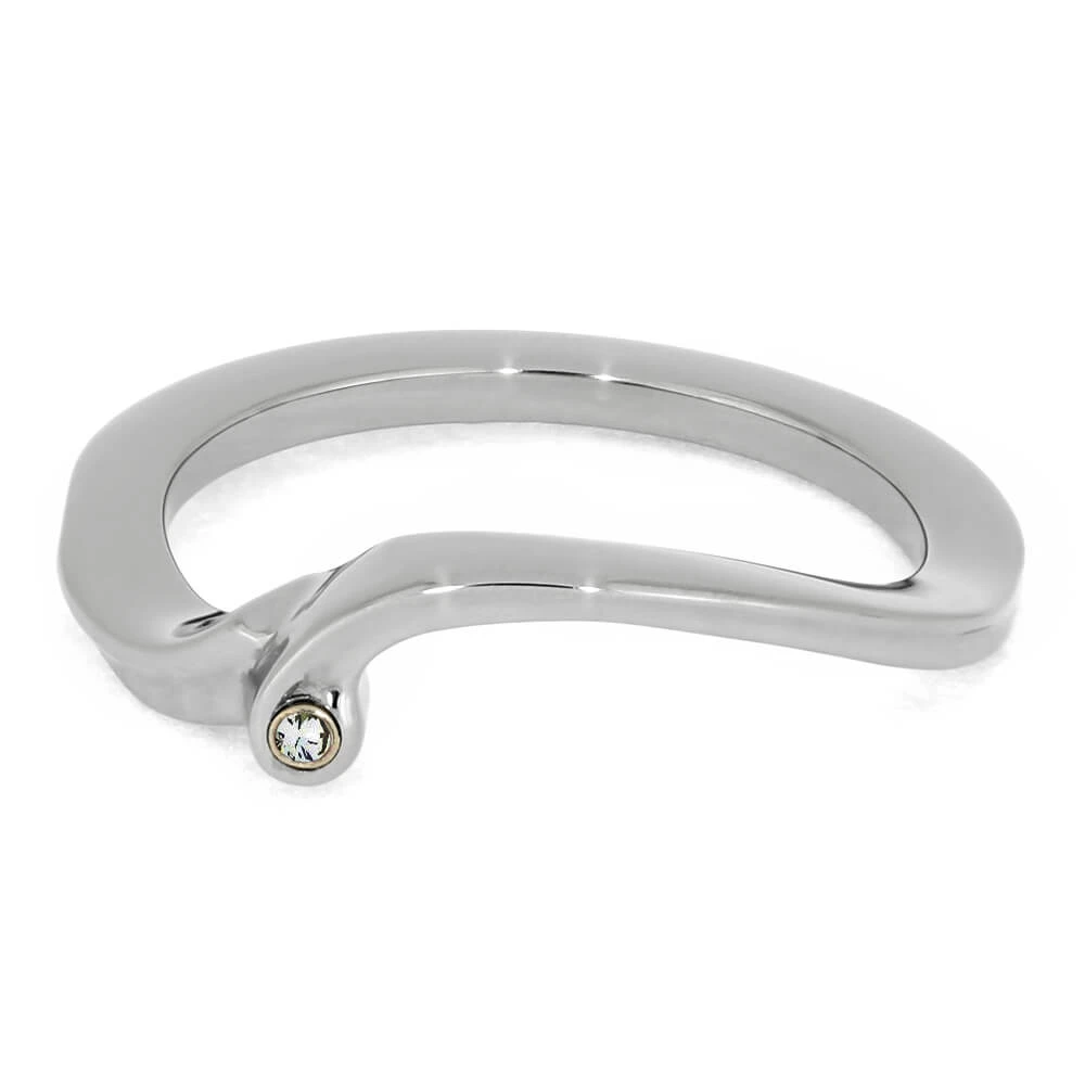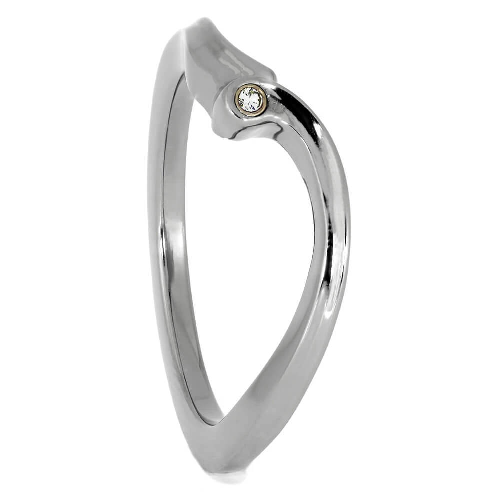 This curved band mates perfectly with our tension set meteorite engagement ring (SKU 4319), or it can be custom made to fit against another engagement ring. Order as shown here with a diamond.