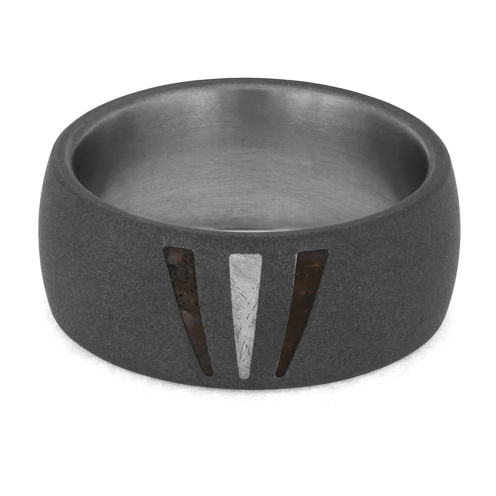 7 mm Titanium with Partial Inlays (2 mm Partial Gibeon Meteorite, 2 mm Partial Ironwood, 2 mm Partial Crushed Dinosaur Bone)
