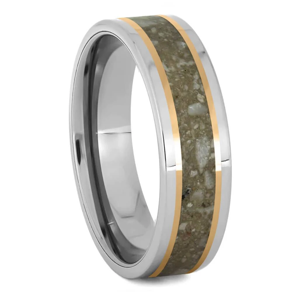 Honor the memory of a special person or pet with this exquisite memorial tungsten ring. Inlaid with ashes and detailed with polished rose gold pinstripes, it will be a beautiful symbol of love and remembrance. Feel a connection to the past with this timeless and meaningful piece.