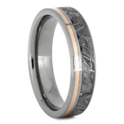 This rose gold engagement ring has an oval cut morganite center stone with eight moissanite accent stones. Polished 14k rose gold brings additional color to the design and complements the pink tone of the marvelous, morganite stone. Inlaid in this ring’s shank is our white Stardust, featuring flakes of genuine meteorite.