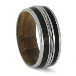 Vinyl Record, Guitar String, And Whiskey Barrel Ring With Fossil Inlay