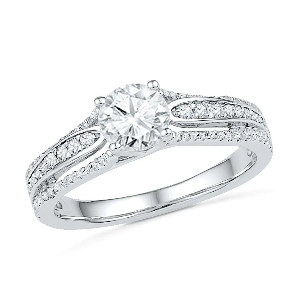 She will be captivated by this diamond engagement ring before she can say yes. The diamond accented band highlights the brilliance of the center stone and its classic solitaire setting. The style of this design will last the test of time. This engagement ring stuns with 3/4 ct. t.w. of diamonds.