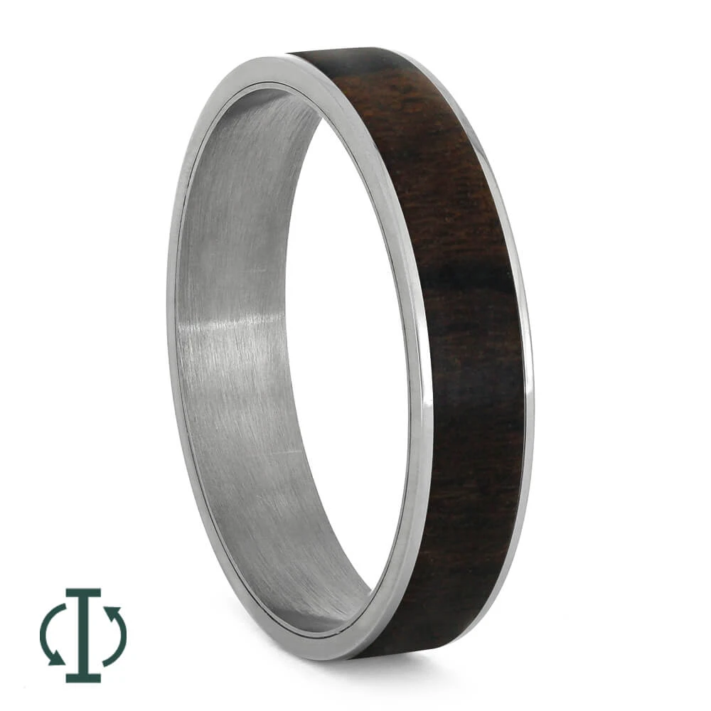 Dark and mysterious Ziricote wood sits securely between two thin titanium pinstripes. This natural component can be used in our interchangeable titanium twist rings, which allow you to customize your ring whenever you want.